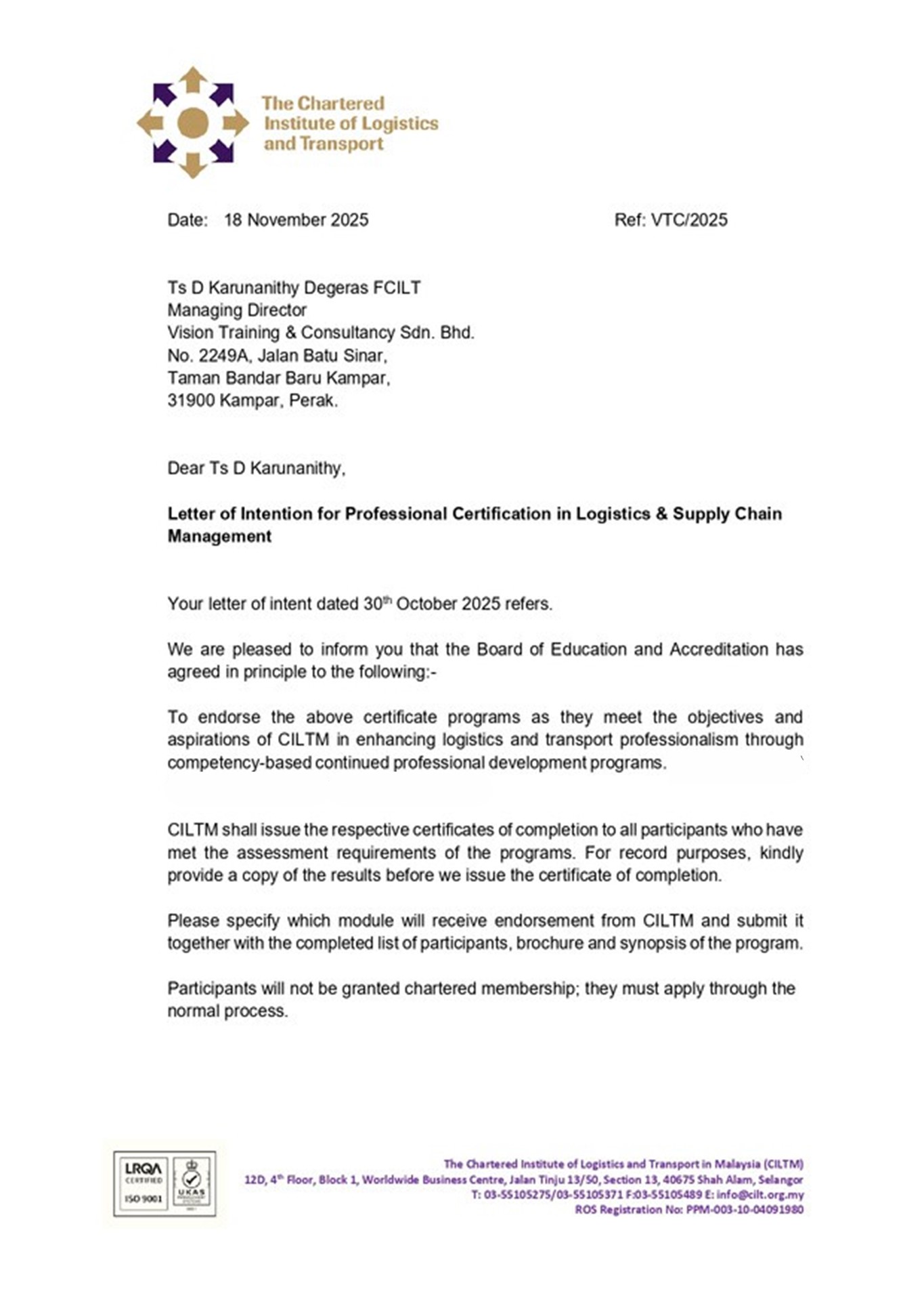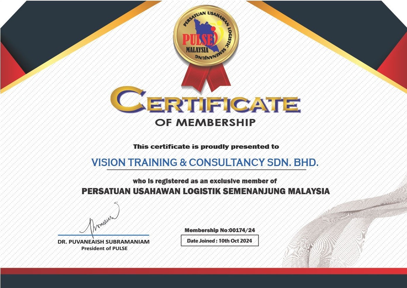 Bachelor’s Degree in Logistics Management (Chartered – CILT UK) MSc in Logistics Management (UCSI University) Certified HRDC Trainer of Trainer 2015 Certified Trainer of Trainer (CTOT) 2024