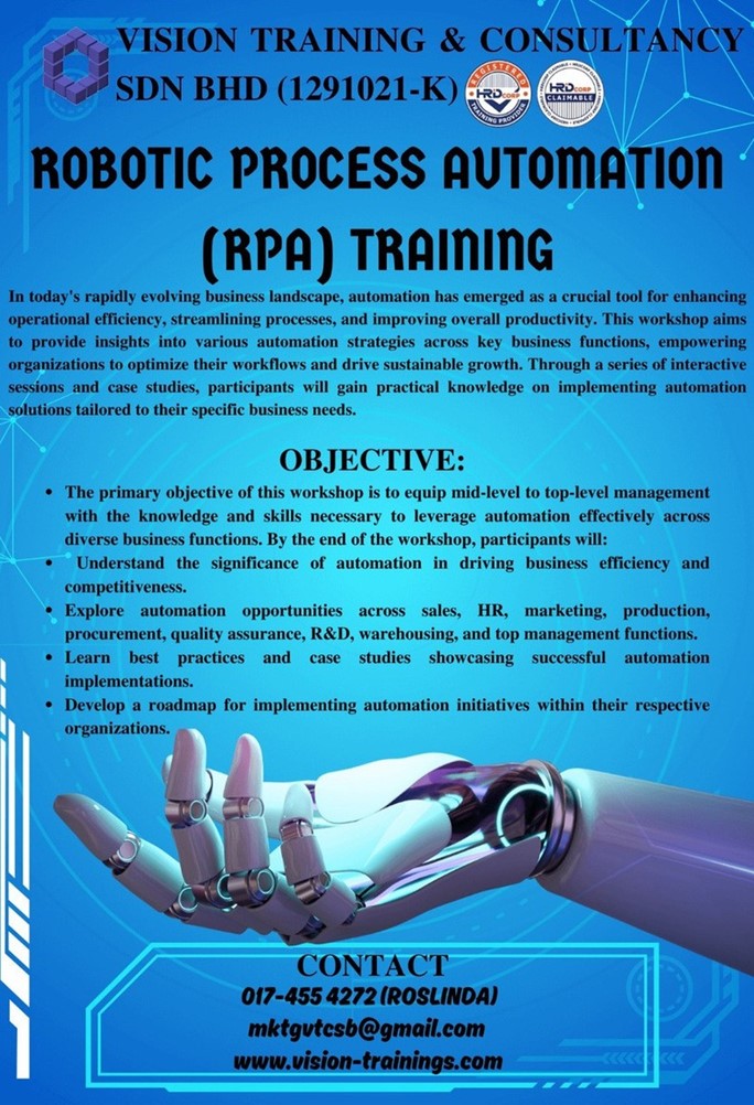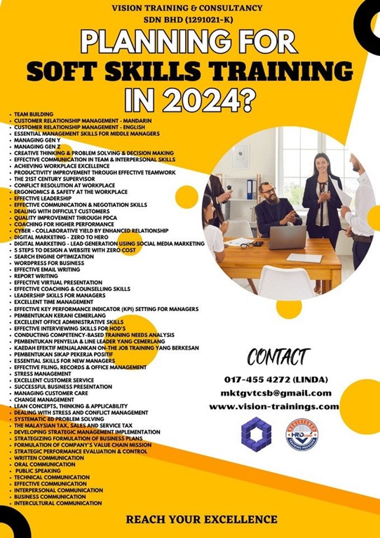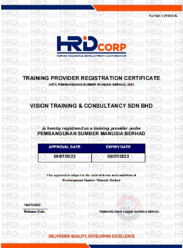 Vision Training & Consultancy Sdn Bhd is a Registered HRDC Training Provider and was Established on 13th August 2018 by its Founder Ts Karuna (Shan) to provide Various Technical, Non-Technical & Certification Based Trainings for Employees within the Industrial & Service Sector.